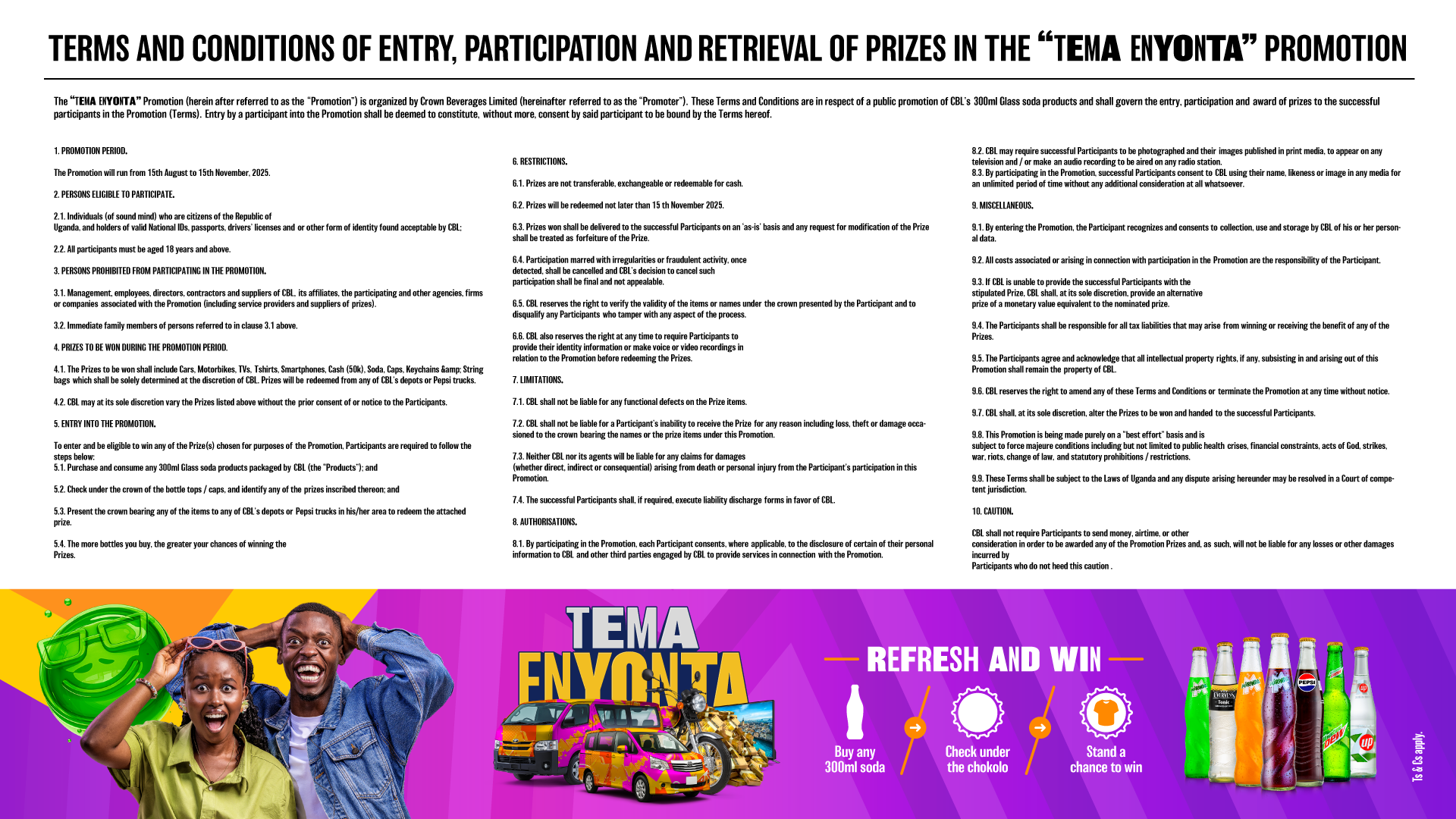 Tema Enyonta builds on our longstanding tradition of delivering fun and memorable promotions, but this time it comes with a fresh, bold twist. With every purchase of a 300ml RGB soda, consumers simply check under the crown to stand a chance to win prizes.